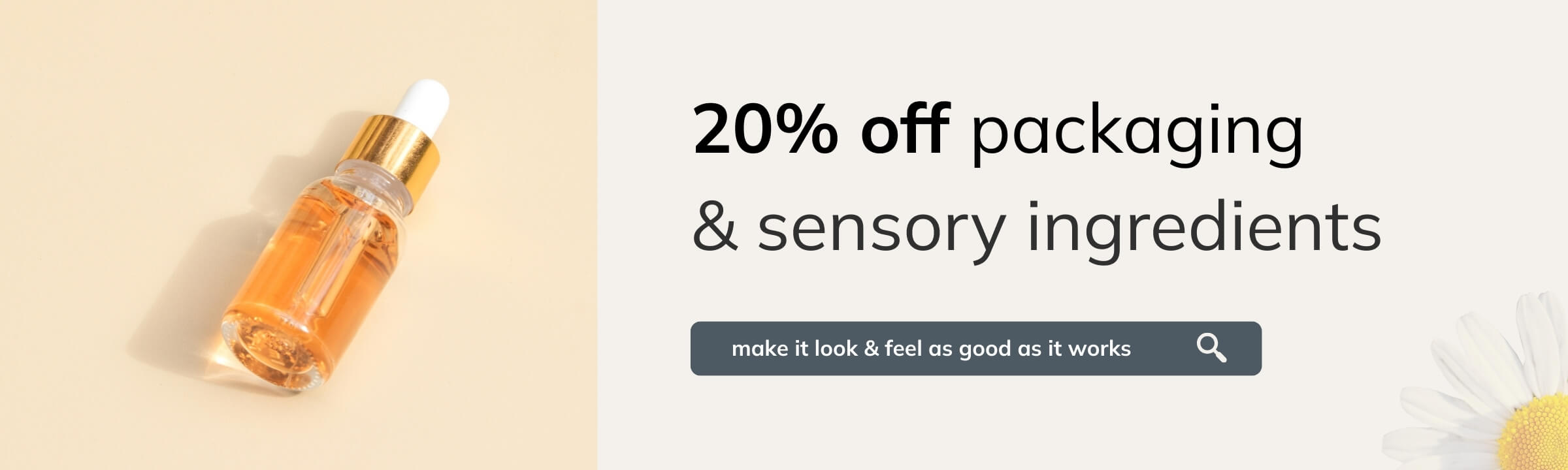 Packaging and sensory ingredients to help your products look and feel as good as they work — now 20% off.
